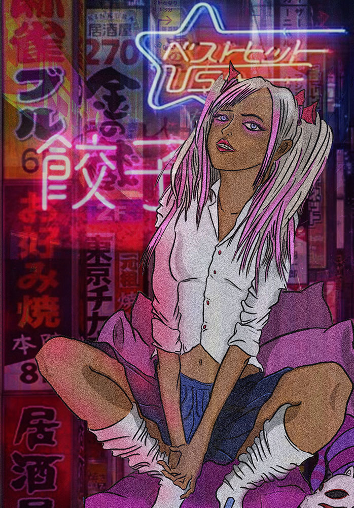 Oliver works both traditionally in marker, colour pencil, ink, watercolour and spray, as well as digitally. He is inspired by daily life and relationships between friends, lovers, even family. He combines sci-fi, fashion, sk8 culture and beautiful females in his Impact Illustrations.