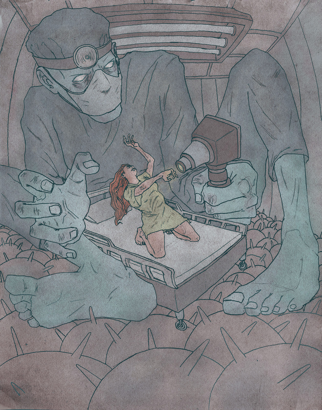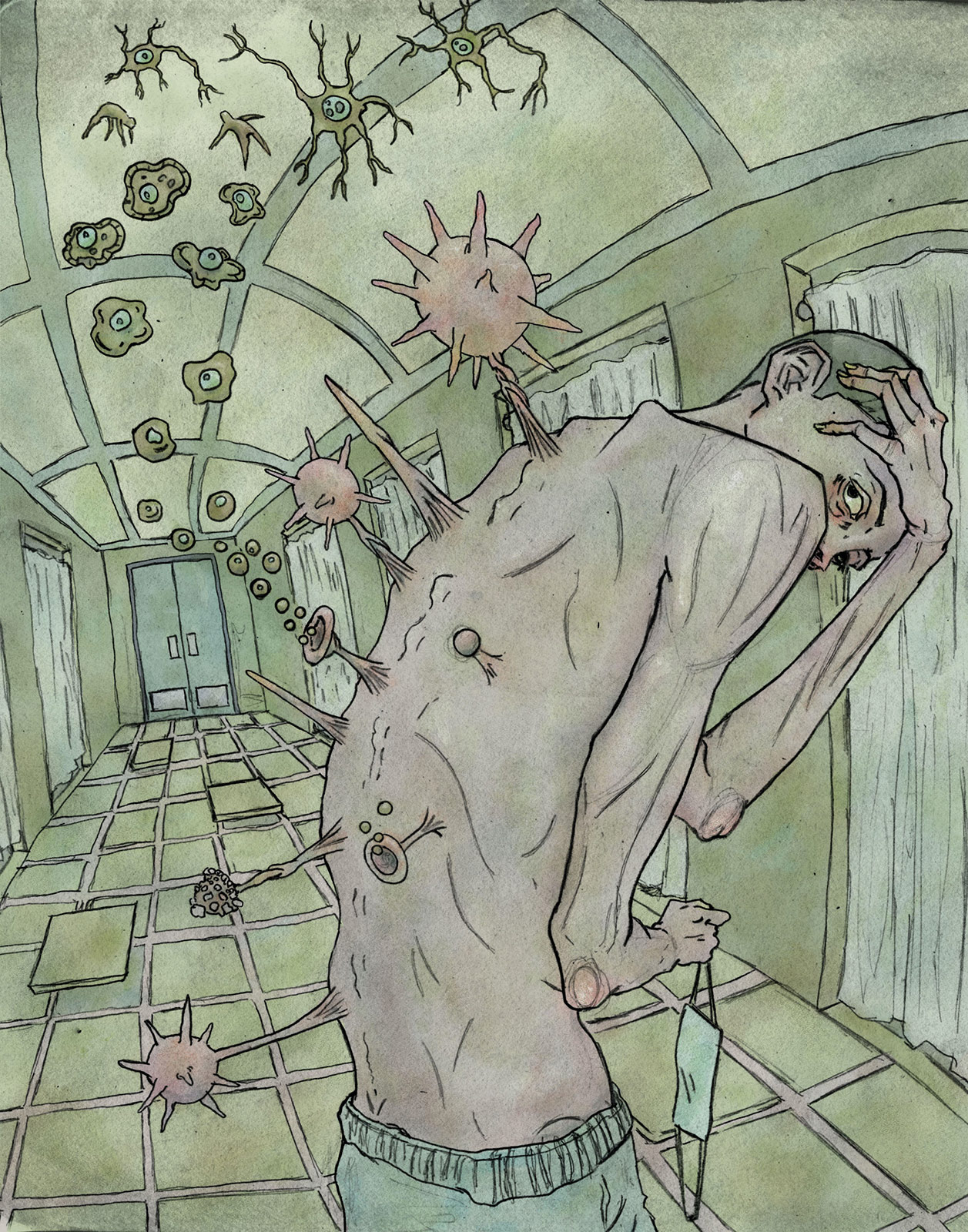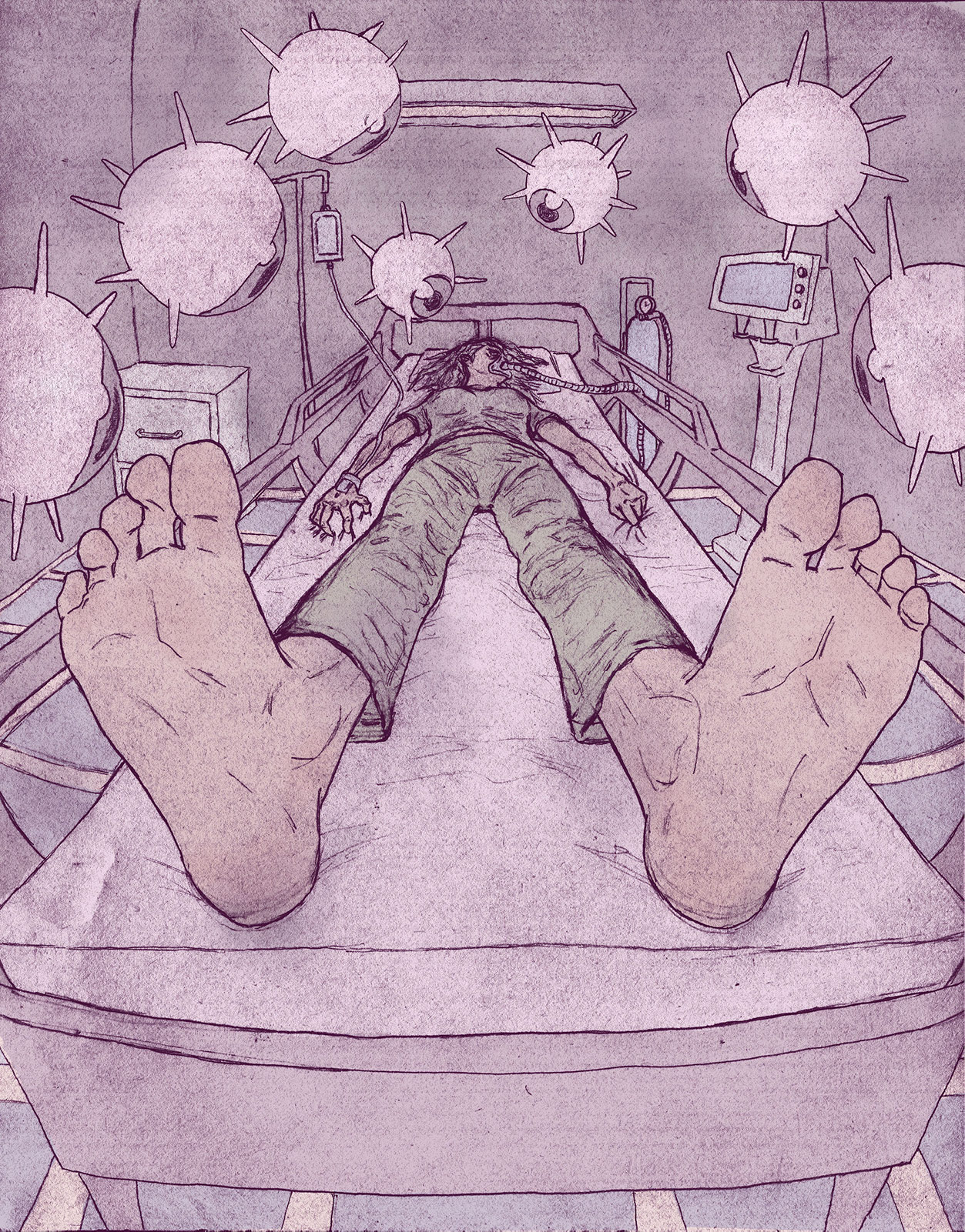 Each piece is connected through the setting of a hospital which is a place that houses both healing and death, the latter steering the tone of the current pandemic. This brings our thoughts back to how the paranoia caused by this pandemic catalyzes mass realization of how fragile our mortality truly is. This series hopes to act as a time capsule to echo this realization. A memento to serve as a reminder that even though the population is divided by our fears of existential realization, we are connected through the ideology that our time will always be limited. This realization can be dismal, but our sanity does not need to be lost when facing this truth because we also remain connected through our sense of humanity.