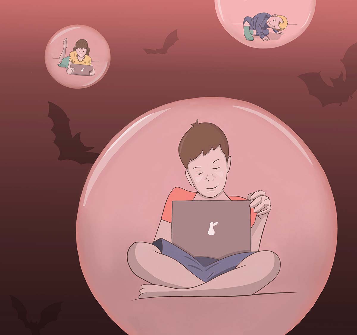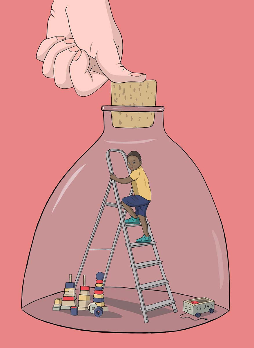 In the second series, Kids’ Isolation During COVID-19 Pandemic, I created digital illustrations about the impact of pandemic isolation on children’s mental health. The illustrations show how children’s cooperation with quarantine enforcement came with a high price to their mental health and emotional well being. It depicts how isolation had severe mental health consequences including experiences of loneliness and anxiety at early ages of childhood. Children of the age of the pandemic will experience lasting damages from the current shelter-at-home practices for years to come.