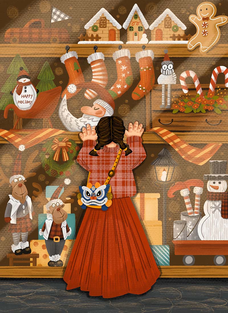 China is an ancient cultural country with over five thousand years of cultural heritage. The fact that traditional Chinese culture is disappearing is of great concern to me. My four illustrations reflect the forgotten aspects of China; the traditional Chinese Opera, festivals, musical instruments, and family belonging. Through the depiction of details specific to each aspect, I show the impact of foreign cultures and the current situation in China I have observed. My illustrations address the impact of globalization where exported cultures dominate over traditional cultural expressions. I feel it is regrettable to see the gradual disappearance of Chinese cultural heritage.
