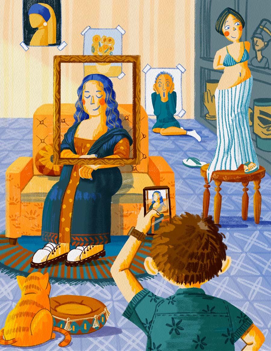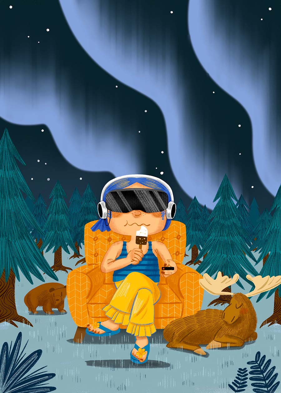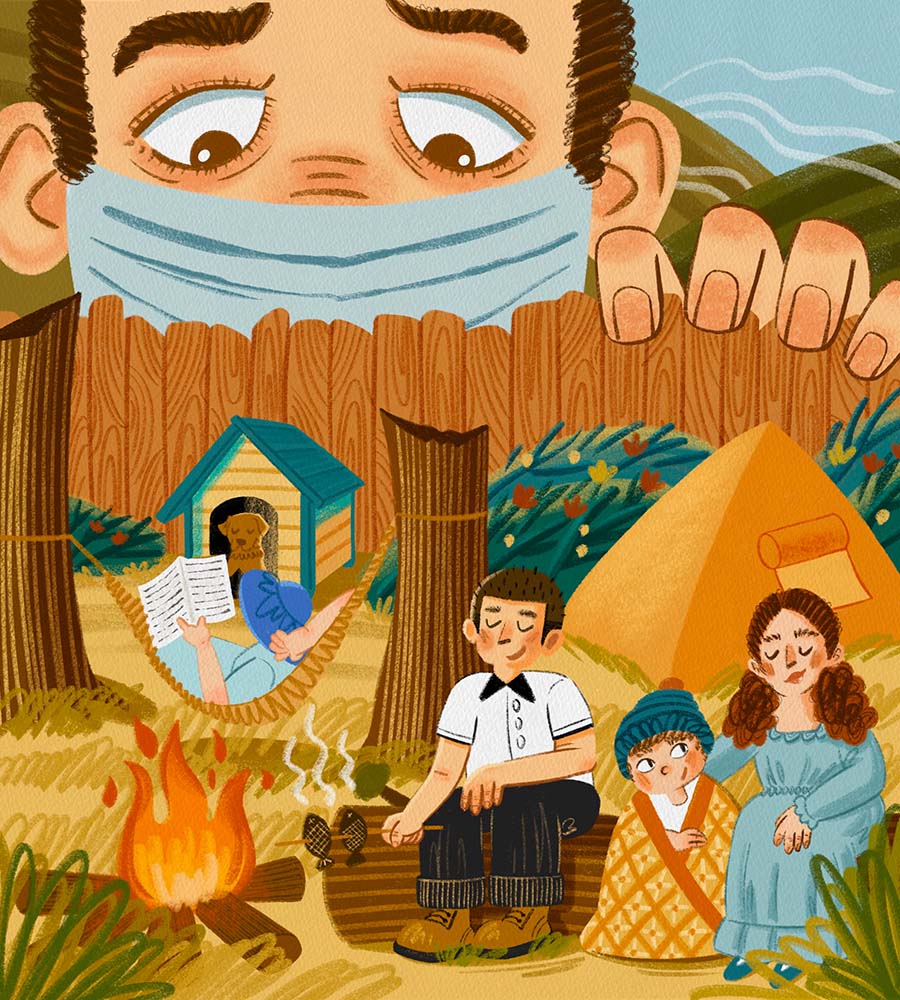 The second series, Staycation During the Pandemic, depicts the new lifestyle during the pandemic. The last two years have looked a lot different than any time before. Other than stress, depression and anxiety, our life can still be enjoyable – even with health concerns and travel restrictions. My illustrations portray how to celebrate the joys of life without leaving the house. I hope this series can help you recall the warm moments in your life during the pandemic times.