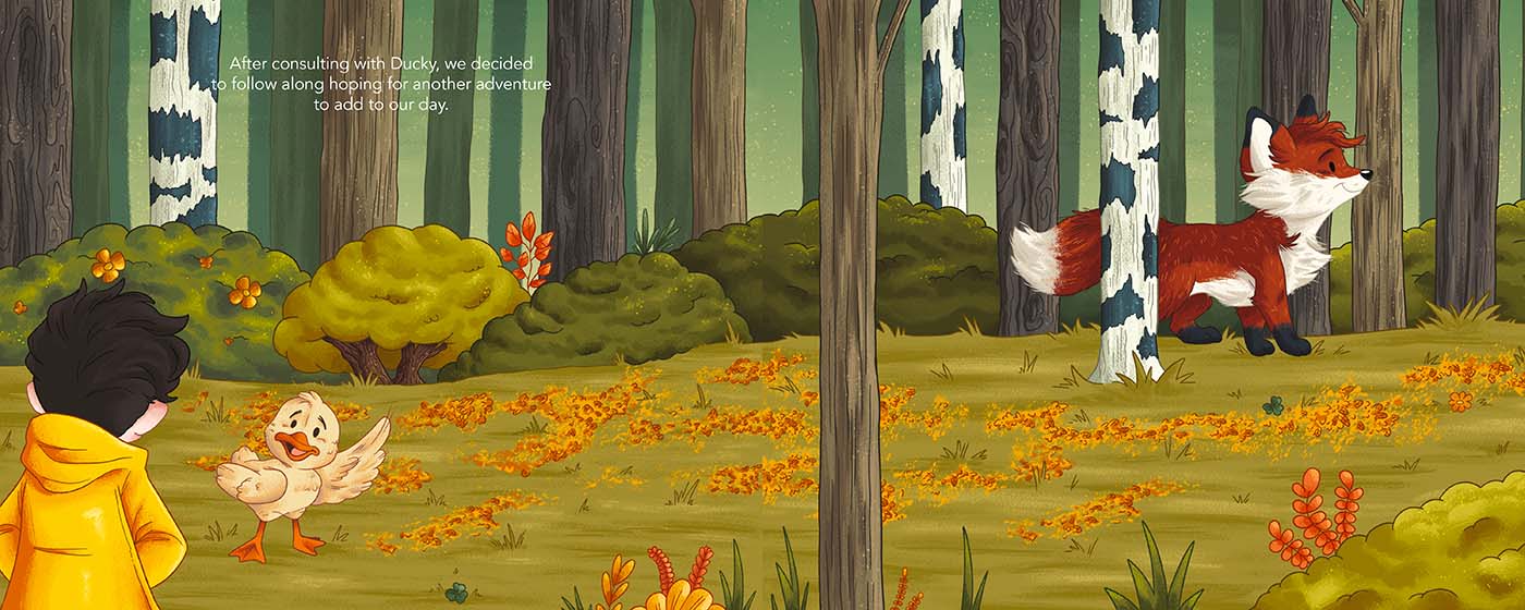 As an illustrator specializing in children’s book illustrations, I chose to make the featured animals look like they fit into the visual world of my children’s book pitch. The topic for my picture book deals with the journey of self-acceptance as an LGBT person as well. In my children’s book pitch, the plot revolves around a little boy and his journey to find out what his fuzzy feelings mean regarding his special friend. He takes on this journey with the help of his little rubber ducky – who comes to life in his imagination as his companion and the magical talking fox who acts as a guide to show him that he is in fact not all that different from other kids and that it’s okay to be a little different.