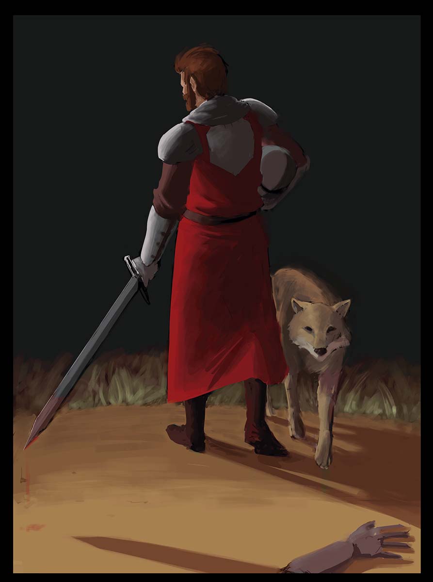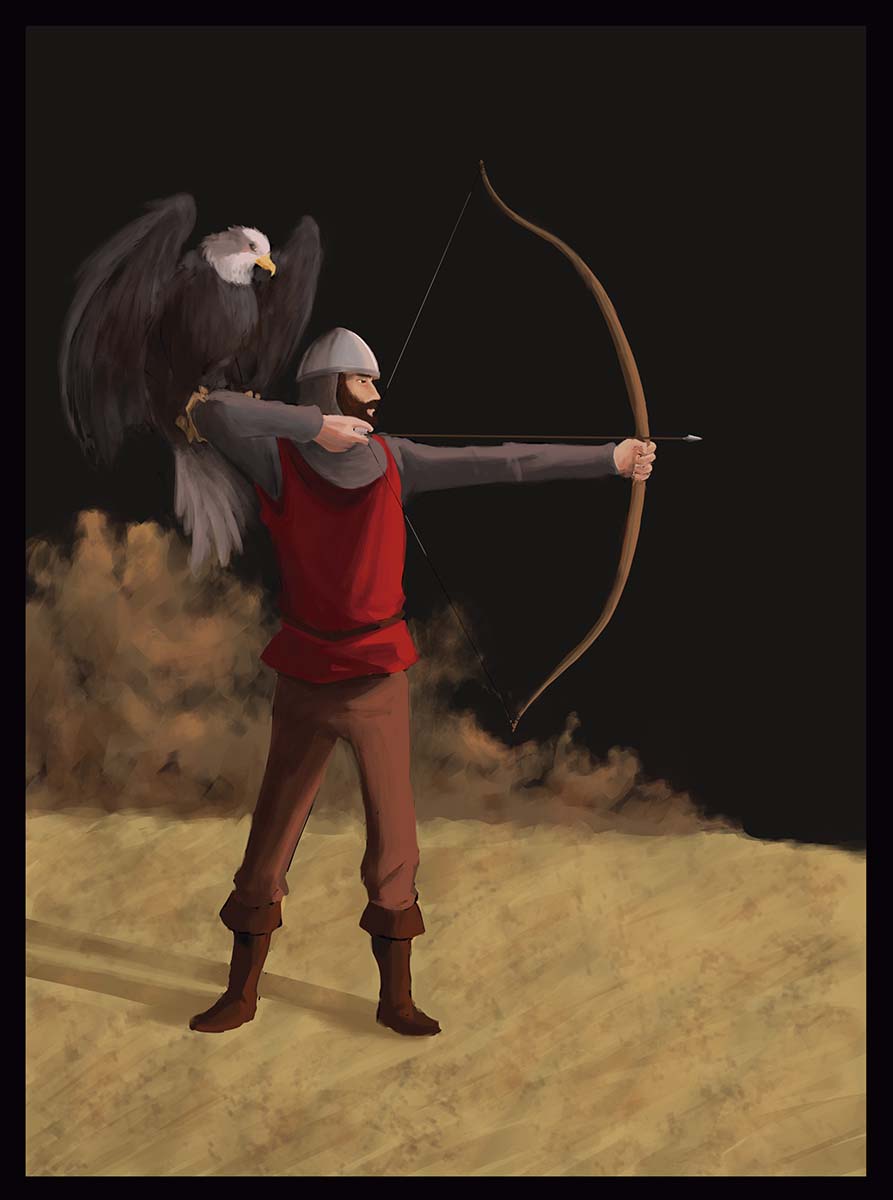 All pieces talk about myself and who I am. The Portuguese heritage using merchant’s clothing as to the business my family is tied to, the dragon being a symbol of power and wisdom. The archer showing how much preparing I take to execute my work, and the eagle symbolizing my vision from afar. The knight holding his family crest on his back, doing whatever it takes to protect it, having a wolf at his side representing loyalty and responsibility. And on the last piece showing my artistic side, a ram is present representing creativity. The animal meanings reinforce the message on the pictures.