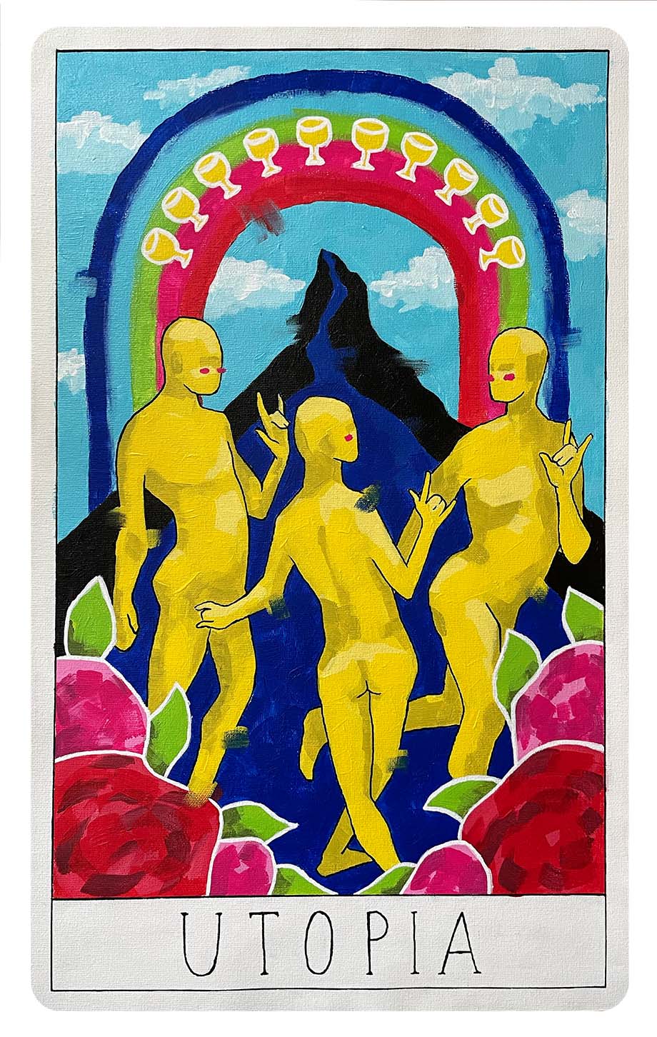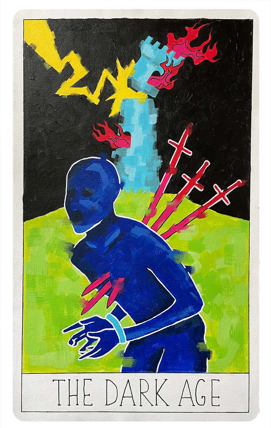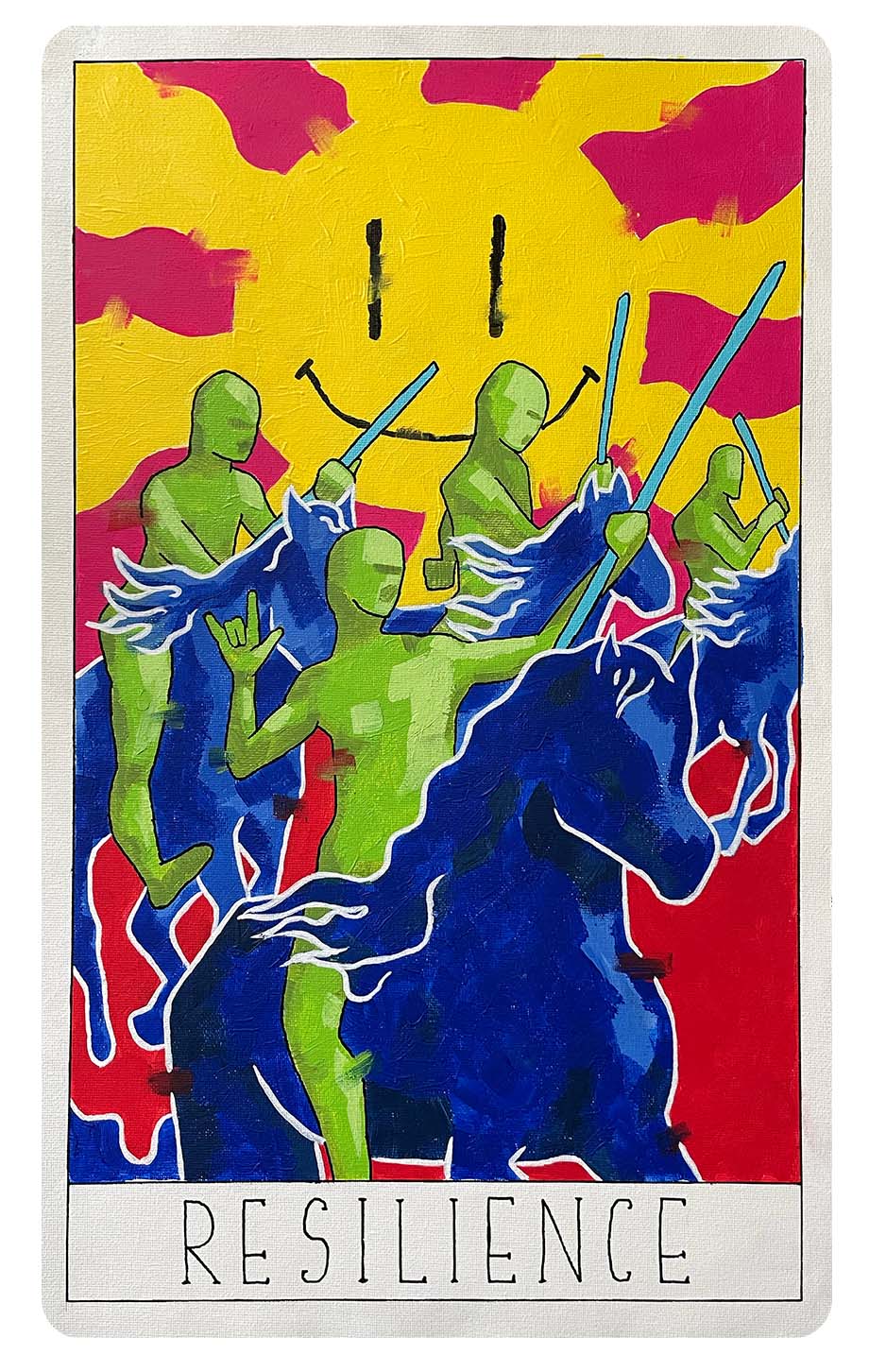 The four illustrations are painted with acrylic and a variation of brushstrokes to depict
