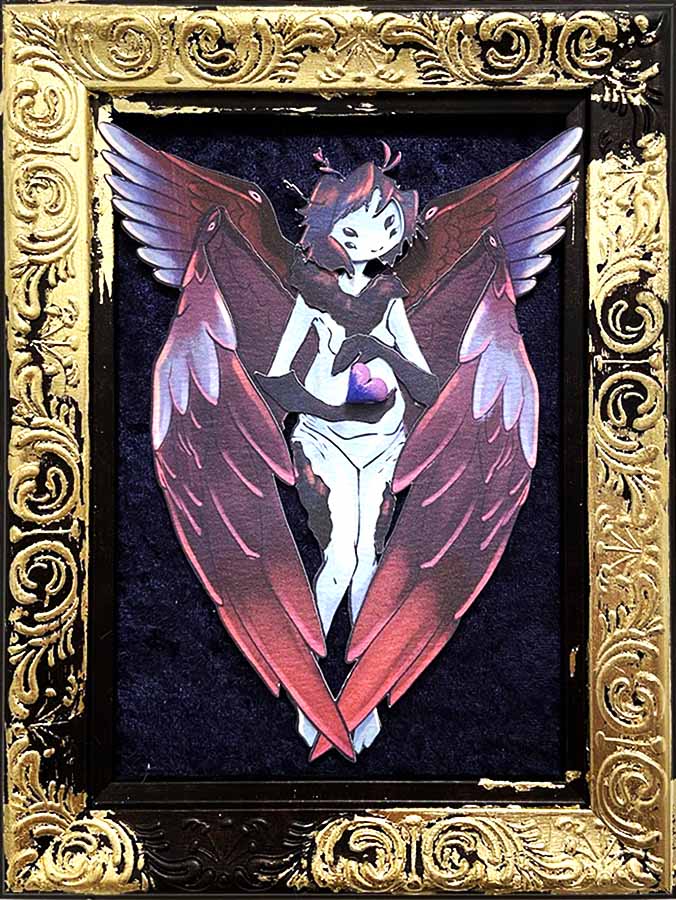 For awhile now I’ve felt like I have lost a part of myself, like I grew out of something without realizing. The more I thought about my younger self, the more it felt like I couldn’t relate to her. I wondered when I learned I shouldn’t smile with my teeth, when I learned it was bad to take up space. I wanted to understand how I grew into who I am now, how my “Self” changed. I think that while your Self can be infinitely changing, your heart grows. It doesn’t change, the vessel holding it does. I wanted to show the versions of myself that have and will carry my heart, from life into death. My four pieces are some of these different vessels; Life, Death, Myself Then, and Myself Now. Preserved butterflies and taxidermy were the best way for me to represent this idea of growth and life-in-death, which is why I used bug-like and bird-like features in all my pieces. I didn’t want anything to look human, I wanted it to appear magical and dream-like. I made these pieces for myself; for my younger self to know that growing up is okay, and for my older self to one day remember where we started.