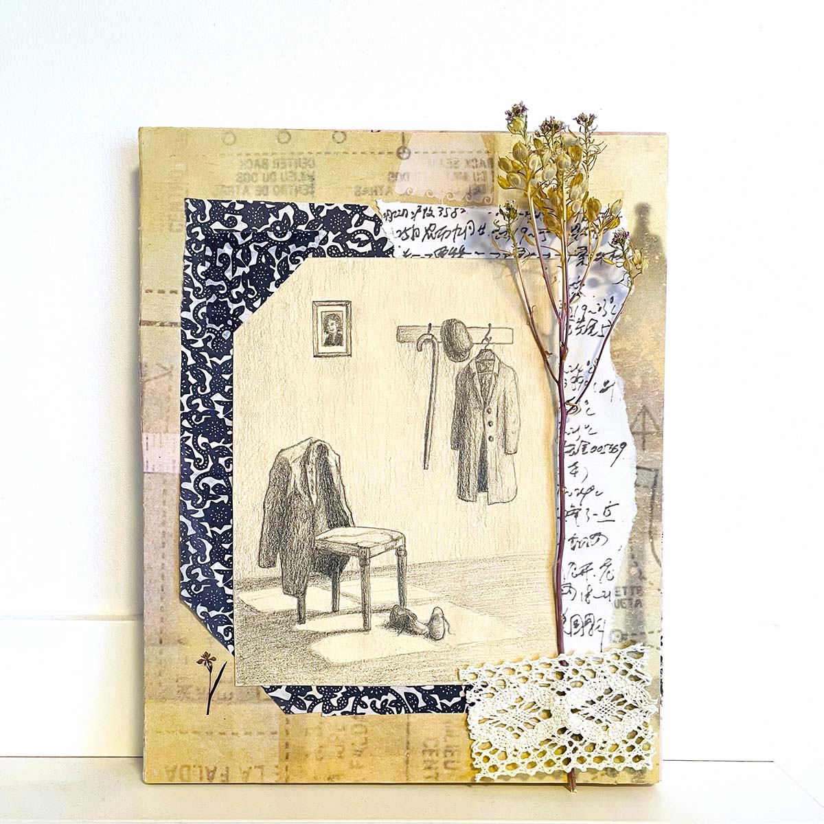 Pencil Drawing, Collage on Cradled Wood Panel (8*10 in)