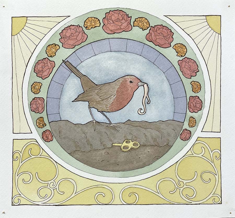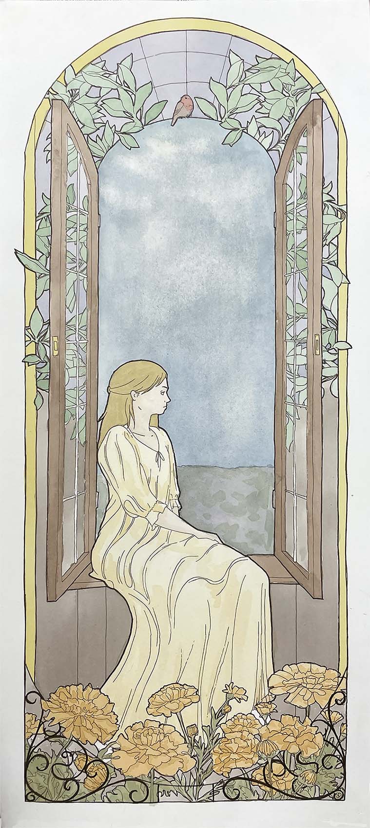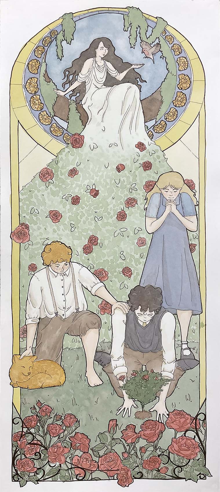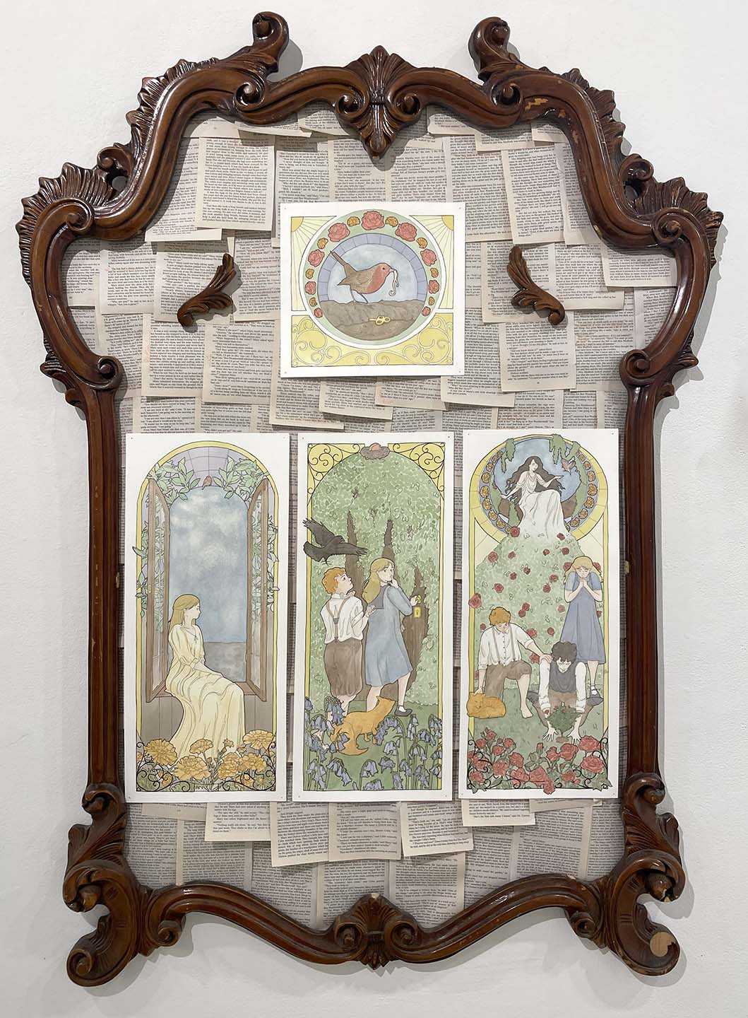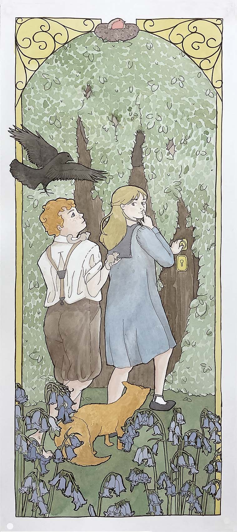 I used an Art Nouveau style, a popular art movement when the novel was written. The style focuses on botanical studies, flowing lines, and capturing the natural world. I feel this style best reflects Mary’s transition. Art nouveau is about freedom. About a release from tradition and the expectations that came with it. It was built off the concept of making art for art’s sake. Just as Mary learned to enjoy her life by living it, Art Nouveau was about enjoying art by creating it.