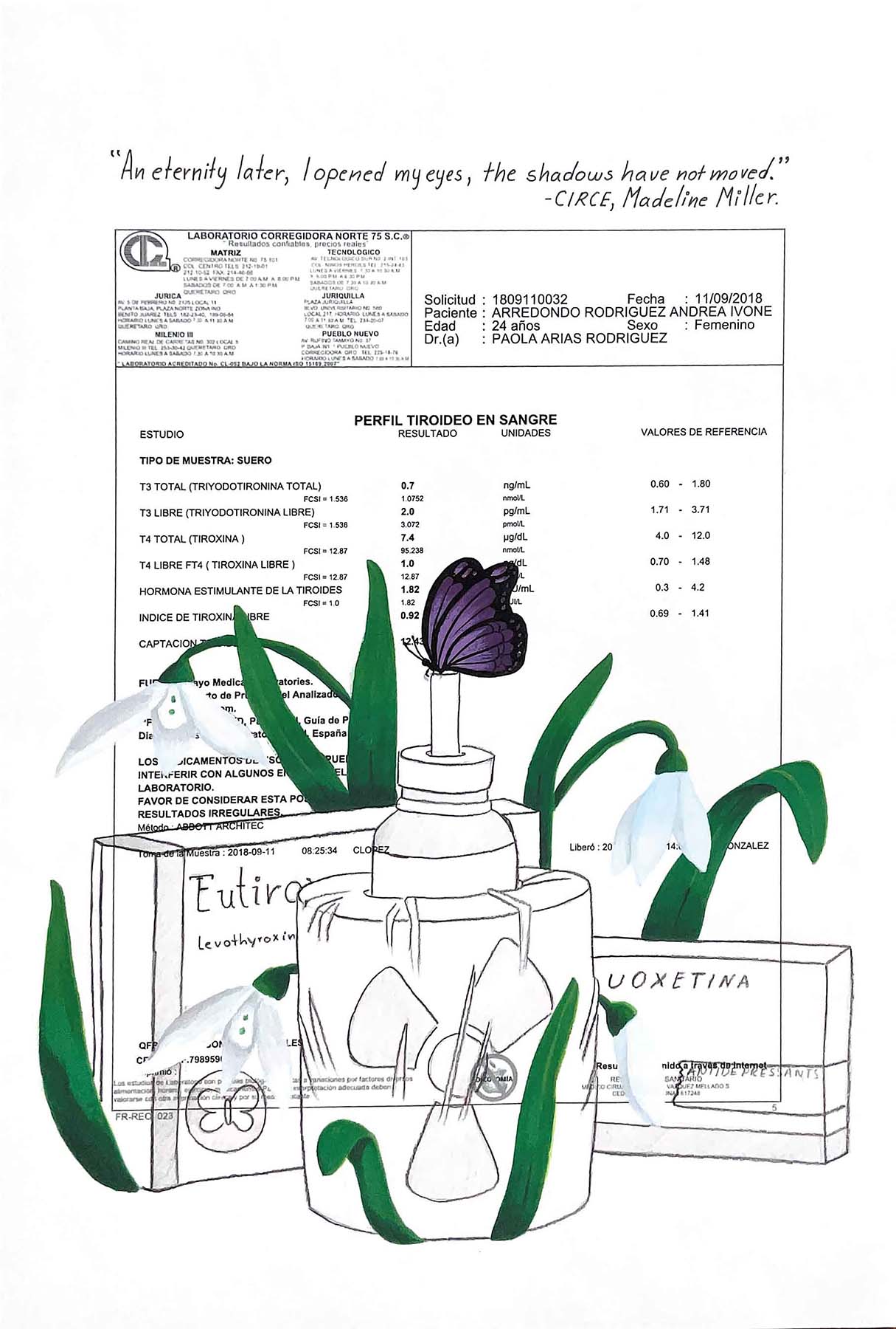 I used the butterfly to change the negative significance I gave to the butterfly motif on the packaging used for thyroid medication and hormones to a bright joyful representation of beauty.