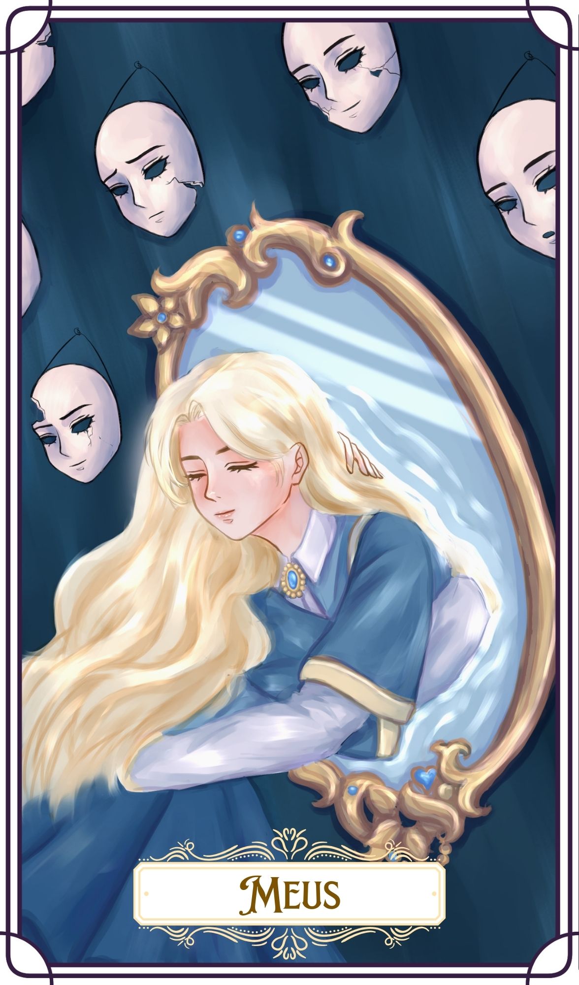 Everyone will have their feelings and thoughts about the cards, and they always have their unique symbolic meanings. The “eye flower” of ” Exercitatio” symbolizes people’s eyes and attention: think of it as the admiration and attention you should receive. “A defective doll” still smiles brightly and confidently in the face of the social prejudice of ” Imperfectio”: It has escaped the bondage of perfection and is free to be who it is. me. The mirror of ” Meus” allows us to meet ourselves again and see ourselves again amid the depravity of broken masks: If you don’t accept and love your true self, who will? The next chess moves in “The Reginae ” represents a choice. ” Queen” is the head of a kingdom, she always has the right to choose what is best for her kingdom: You are the boss of yourself, and you also have the right to make good decisions and avoid problems.